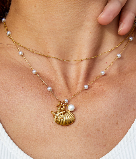 Layered Gold Star & Pearl Necklace